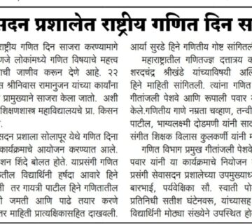 सोलापूर – राष्ट्रीय गणित दिन साजरा करण्यामागे मुख्य उद्देश म्हणजे लोकांमध्ये गणित विषयाचे महत्त्व आणि उगम याची जाणीव करून देणे आहे. २२ डिसेंबर हा दिवस श्रीनिवास रामानुजन यांच्या ... Read More