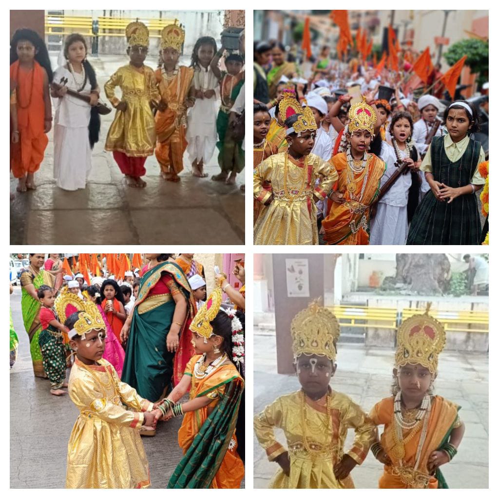 आज वार मंगळवार दिनांक१६/७/२०२४ रोजी आषाढी एकादशी निमित्त बालवर्गाची दिंडी जोशी गल्ली येथील जुने विठ्ठल मंदिरा पासून दिंडीची सुरुवात झाली.विठ्ठल रुक्मिणी व संत तसेच वारकरी यांच्या वेशभूषेत टाळ मृदंंग आणि विठ्ठल हरी नामाच्या गजरात विद्यार्थिनींनी दिंडी अत्यंत उत्साहाने पार पाडली.दिंडी संपल्यानंतर मुलींना खाऊ वाटप करण्यात आला.तेथून मुलींना घरी सोडण्यात आले अशा प्रकारे आषाढी एकादशी निमित्त दिंडी संपन्न झाली.