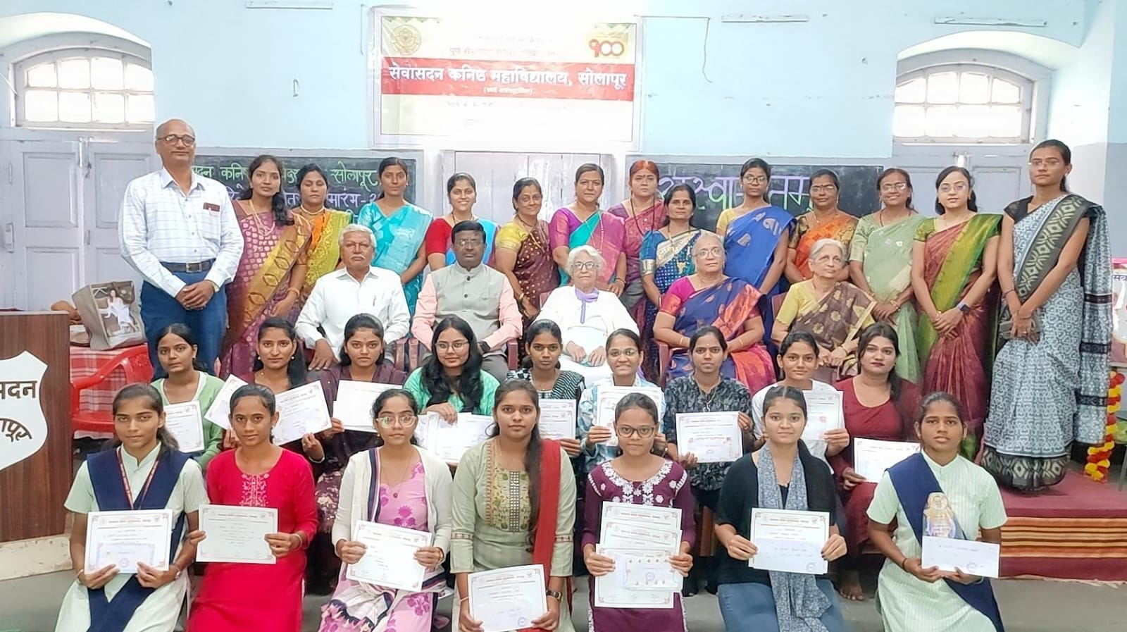 पुणे सेवासदन संस्था शाखा सोलापूरच्या सेवासदन कनिष्ठ महाविद्यालयात वार्षिक पारितोषिक वितरण सोहळा अतिशय उत्साहात पार पडला. याप्रसंगी प्रमुख अतिथी म्हणून सेवासदन कनिष्ठ महाविद्यालयाच्या प्रथम प्राचार्या श्रीमती वंदन जोशी उपस्थित होत्या. याप्रसंगी सेवासदन संस्थेच्या अध्यक्षा श्रीमती शीला मिस्त्री, महाविद्यालयाचे प्राचार्य डॉ. सतीश कुलकर्णी, पर्यवेक्षक प्रा. पद्मकुमार उपाध्ये व परीक्षा विभाग प्रमुख प्रा. मधुरा गोगटे यांची प्रमुख उपस्थिती होती. यावेळी प्राचार्य डॉ. सतीश कुलकर्णी यांनी आपल्या प्रास्ताविकेतून महाविद्यालयाची स्थापना, इतिहास, विद्यार्थिनींनी विविध क्षेत्रात मिळवलेलले यश, महाविद्यालयाची वाटचाल यांविषयी माहिती दिली.