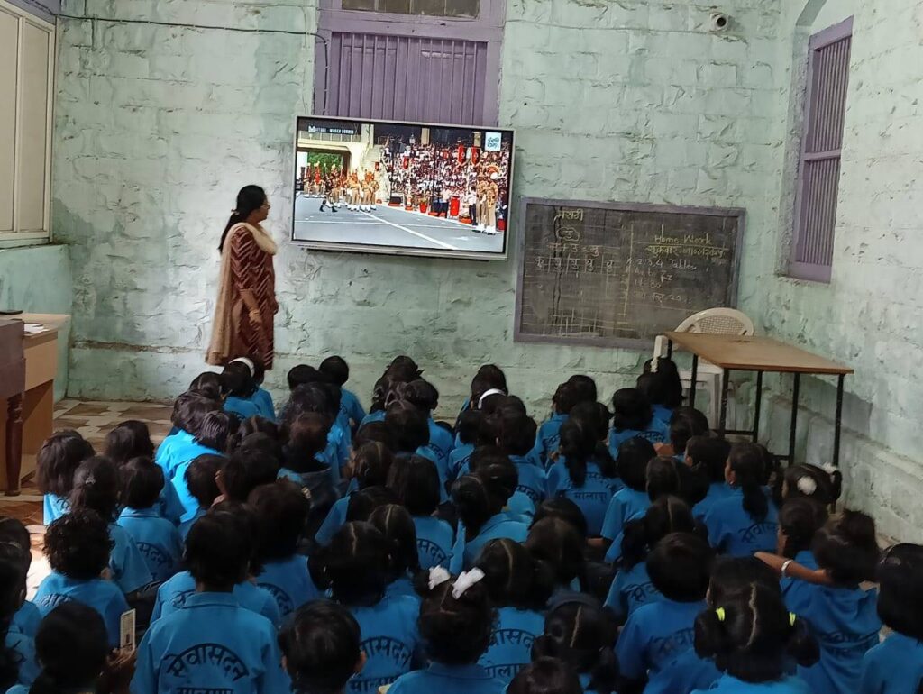 तसेच विद्यार्थिनींना भारतीय सैनिकांवरील प्रेरणादायी व्हिडिओ व शिस्तबद्ध संचलन दाखवण्यात आले. यातून विद्यार्थिनींना सैनिकांचे शौर्य, त्याग, देशप्रेम आणि शिस्त यांची प्रेरणा मिळाली.